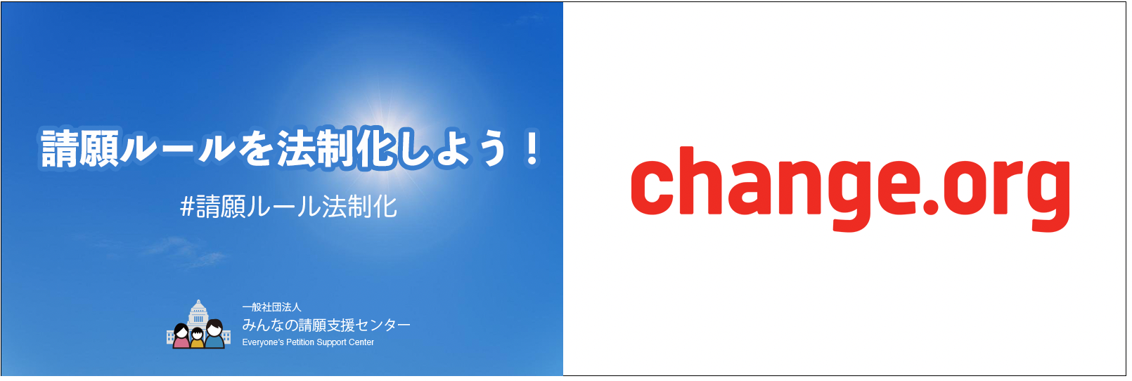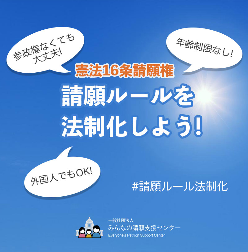 「みんなの請願支援センター」ではChange.orgにて「請願ルールを法制化しよう!」というキャンペーンを立ち上げております。ぜひご賛同ください。